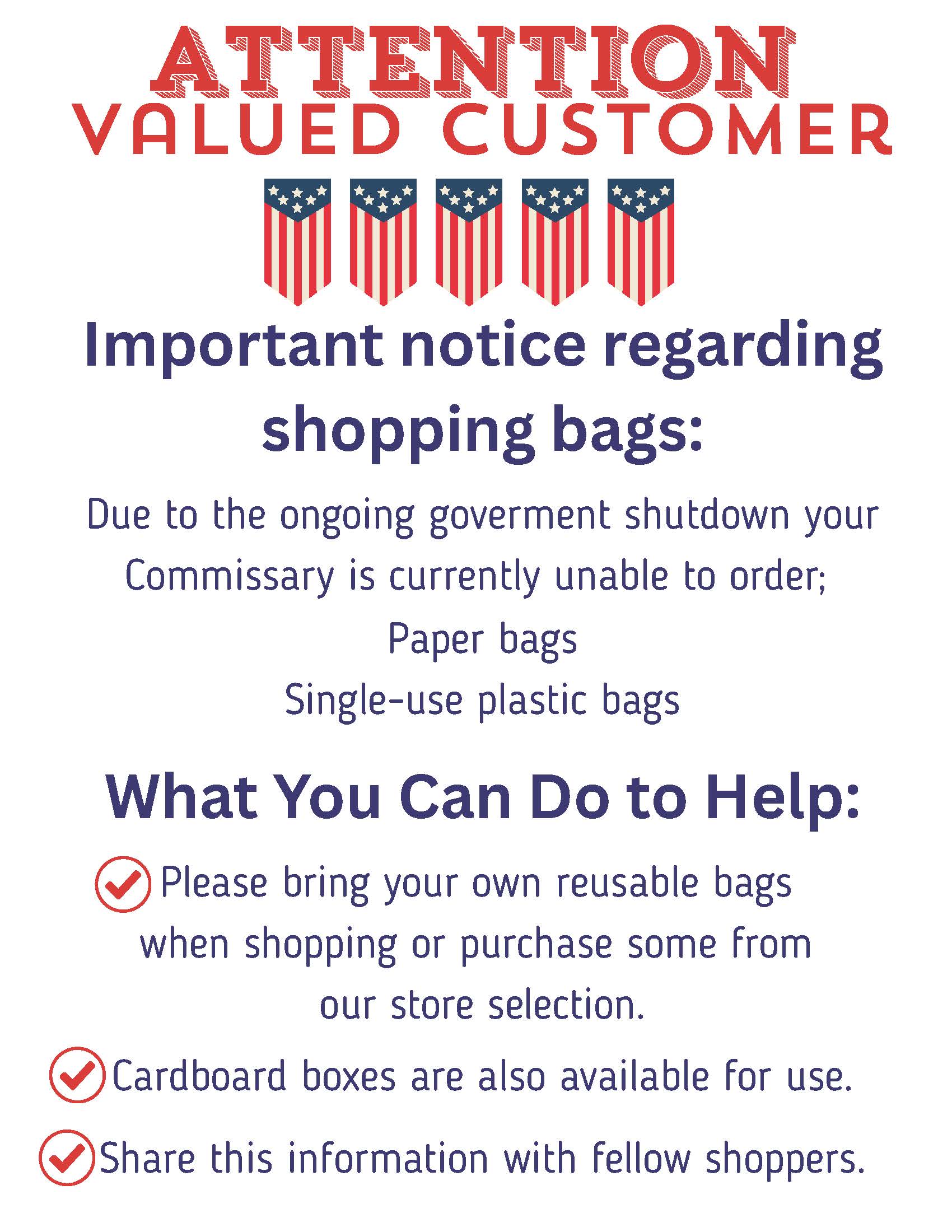 ELIMINATION OF SINGLE-USE BAGS: Effective June 30, 2024, we’ve eliminated single-use bags. Customers will need to bring their own bags. Reusable bags will be available in store for a small fee. See your store associate for more information.